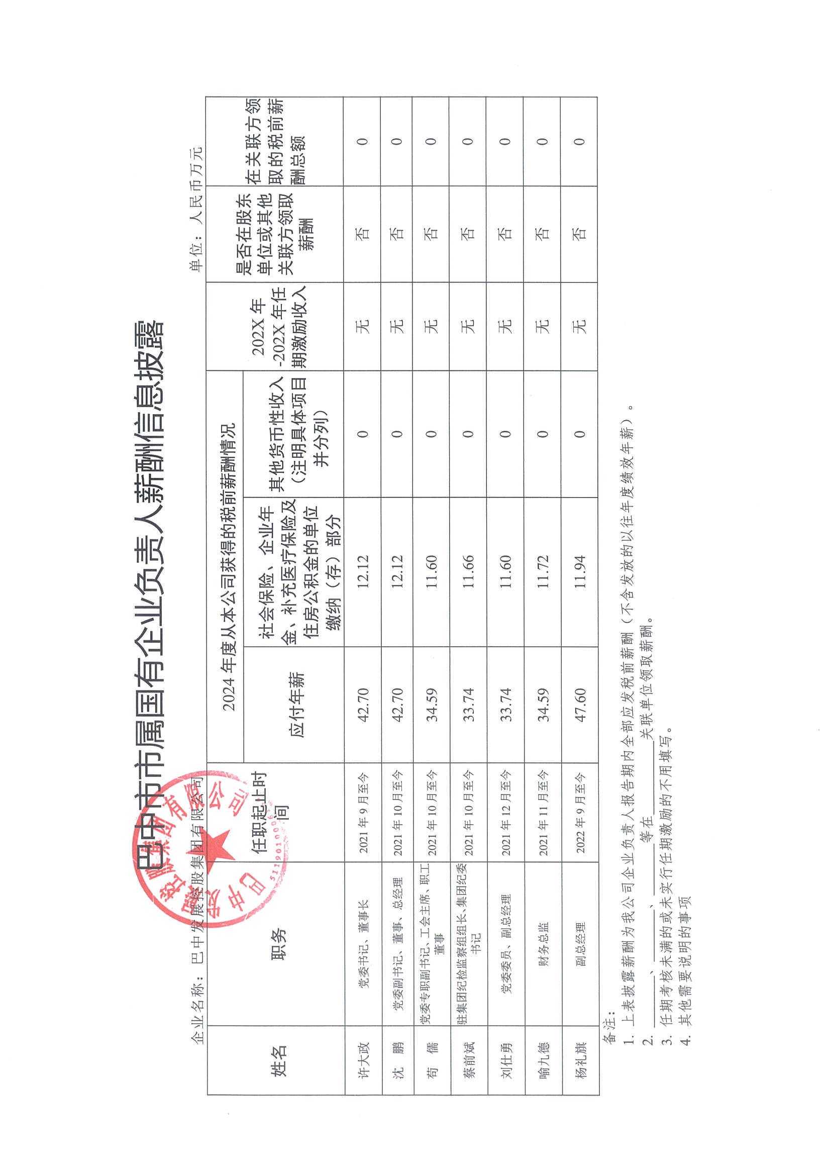 巴中市市屬國(guó)有企業(yè)負(fù)責(zé)人薪酬信息披露